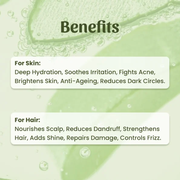 Ce gel d’aloe vera est une solution polyvalente et efficace pour les soins de la peau et des cheveux, un incontournable pour tous ceux qui souhaitent améliorer leur routine beauté naturelle. Utilisé régulièrement, il promet une peau rajeunie, un cuir chevelu sain et des cheveux éclatants de brillance.