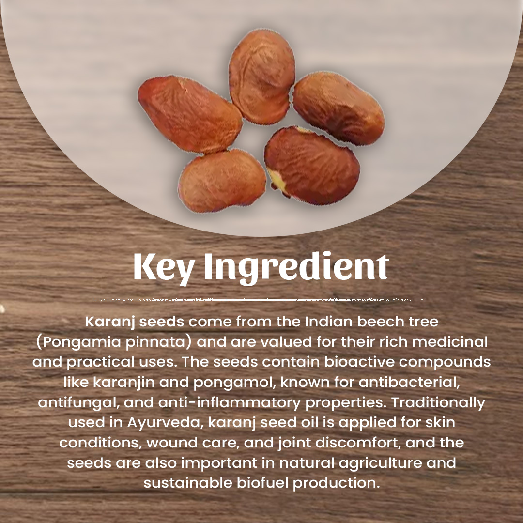 Karanj Beej Churna, la poudre de graines de Karanj est disponible en paquets de 50 g, 100 g, 250 g, 500 g et 1 kg. Elle est utilisée pour les hémorroïdes en raison de ses propriétés astringentes et anti-inflammatoires.